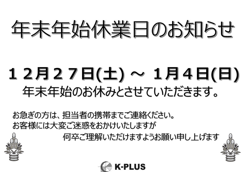年末年始のお知らせ